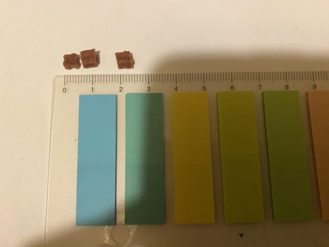 とはいえ、犬に与えたくないようなものは入っていませんし、なにより、フードの粒のサイズが5ミリほどの小さなキューブ(立方体)になっていて(※シリーズによって若干の誤差はあります)、小型犬でも食べやすいのもいいですね!
